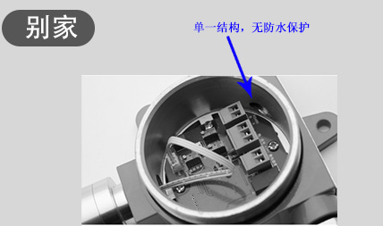 無單獨接線區(qū)域,需外加接線盒,成本增加,施工不方便。無防水處理,進水后設備報廢。